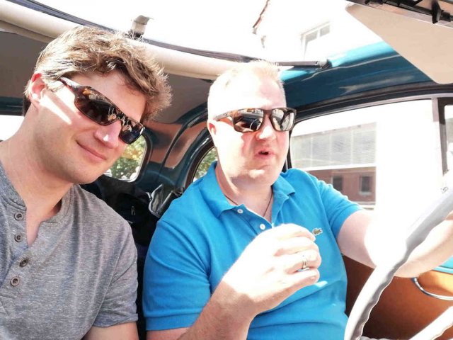 Fiat 500-Fahrer und Beifahrer.