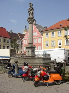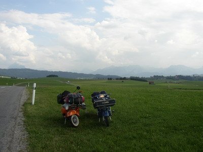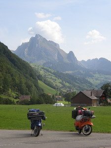 Blick auf Alt St. Johann. Beide Roller laufen...