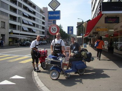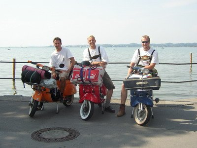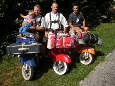 Abfahrt in Fischach bei Augsburg. Domi, Robbi und Tobi.